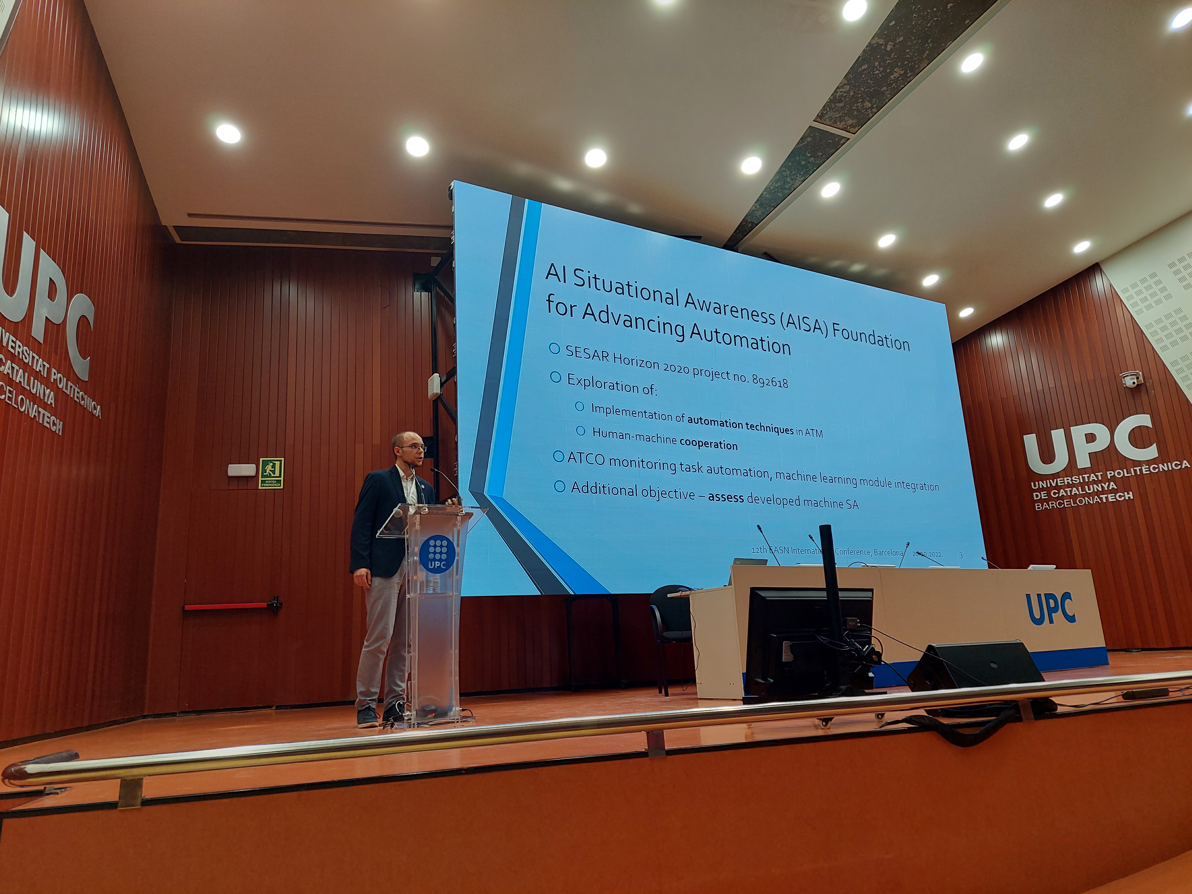 The second AISA Workshop was held in the frame of the EASN Conference in Barcelona (18-21 October 2022) with two presentations from the project. Tomislav Radisic, project coordinator and Ruth Hausler, workpackage leader for Concept Assessment informed the audience on the final results of the project within the „Human-centred design of AI and digital assistants“ session. Ivan Tukaric delivered a speech on “Artificial Situation Awareness Assessment of a Novel ATC Support System“ within the „Emerging Technologies for Further Automation in ATM“ session.